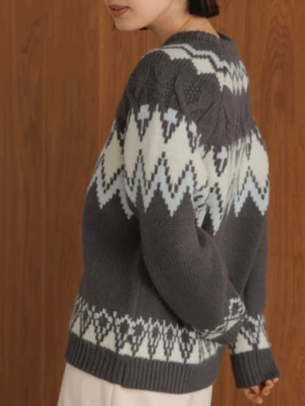 ノルディック柄ニットプルオーバー/gray