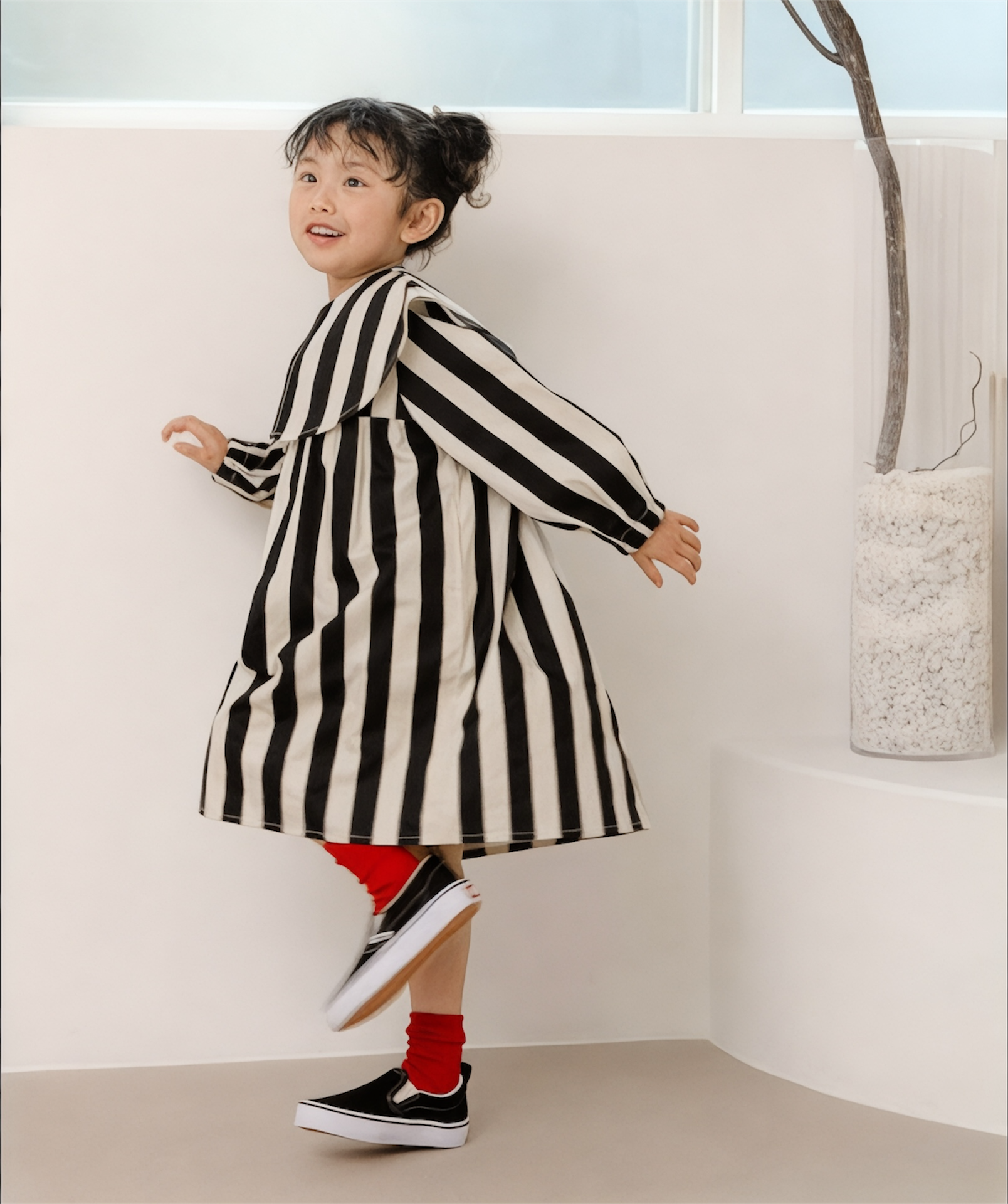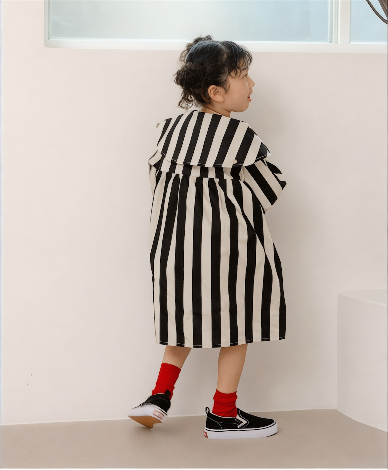 90〜140cm ビッグカラーストライプワンピース/BK